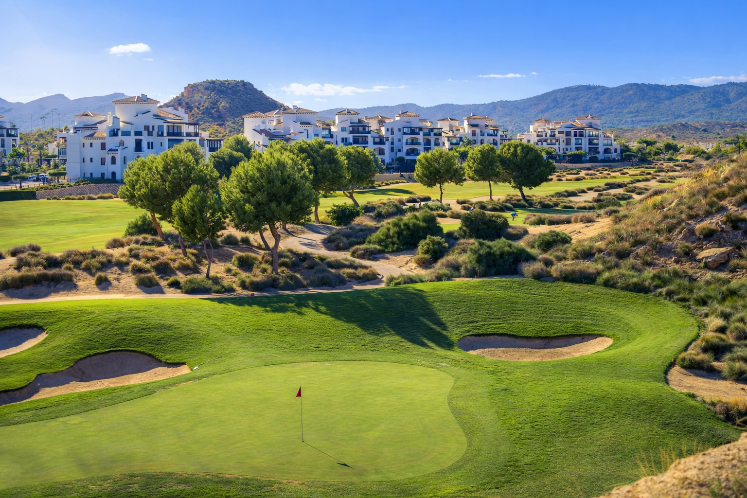 The resort is set within a wide valley landscape surrounded by natural hills and open Mediterranean terrain, offering tranquility and privacy while remaining highly accessible from Murcia city and regional transport links.