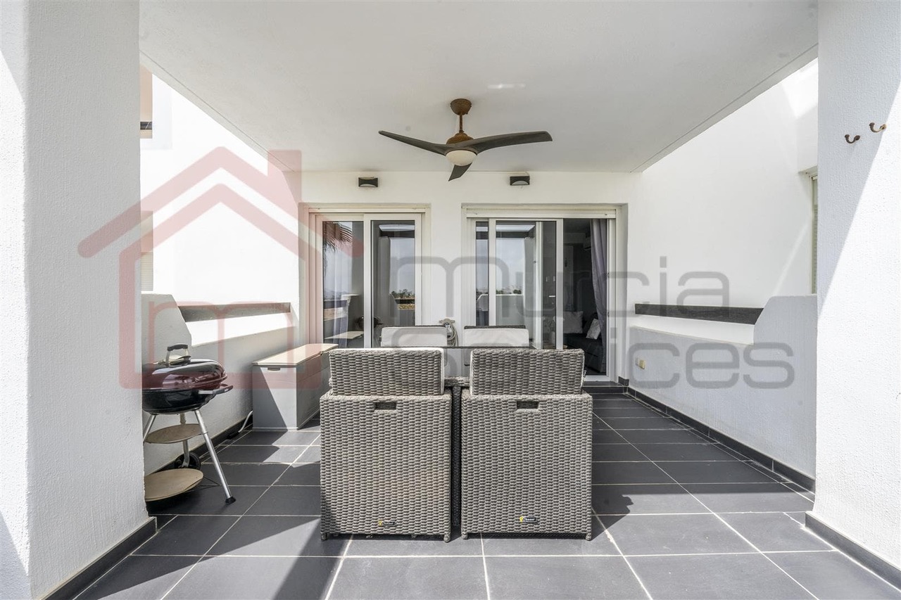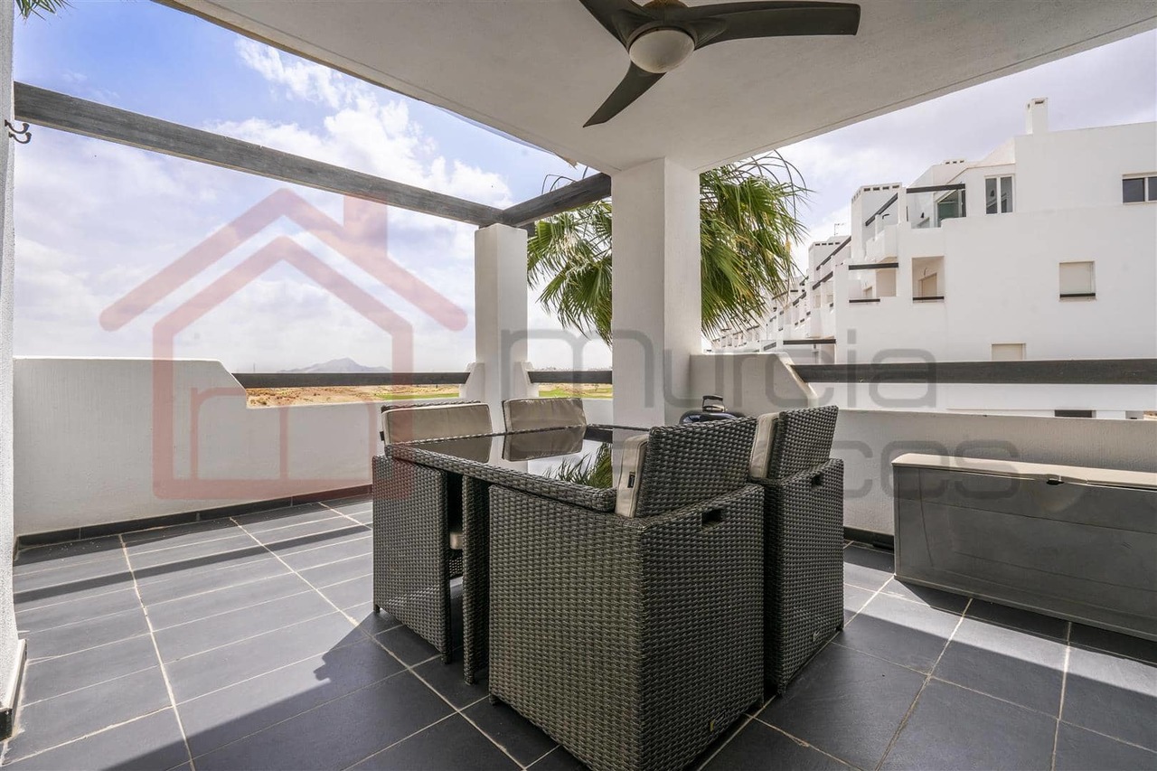 Two double bedrooms, both bedrooms with fitted wardrobes.Fully fitted kitchen with a breakfast barBathroom with a bathtub and design radiator.Living room that has sliding glass doors to the terraceMaster bedroom with sliding door with terrace access , Extended terrace has beautiful views of the golf course and resortAir conditioning throughoutLift access24 hour securityEast /N Facing68 m2 apartment and 18.5 m2 terrace.Recently retiled floor inside.Includes inflatable hot tub.