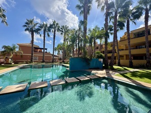 Beautiful 2-Bedroom Penthouse with Private Solarium in Mar de Cristal, MurciaSituated in the sought-after coastal community of Mar de Cristal, this stunning 2-bedroom, 1-bathroom penthouseoffers the perfect blend of comfort, style, and Mediterranean living.Located within a well-maintained residential complex featuring lush communal gardens, a large swimming pool, underground parking, and lift access, this top-floor apartment is ideal as a holiday retreat, rental investment, or permanent home.Step inside to discover a bright and spacious living area that opens onto a private balcony, perfect for morning coffee or evening drinks. The modern kitchen is fully equipped, and both bedrooms are generously sized with built-in wardrobes.A standout feature of this property is the private solarium – your own rooftop haven with panoramic views of the surrounding area, ideal for sunbathing, entertaining, or simply relaxing under the Spanish sun.All of this just a short walk from the Mar Menor’s golden beaches, local shops, restaurants, and amenities.