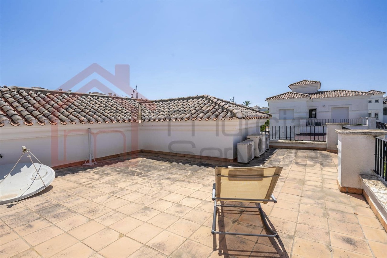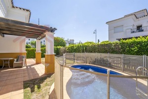 Three bed villa with private pool.All bedrooms have fitted wardrobes.The master bedroom has an en-suite with a bathtub.The second bathroom has a walk-in shower unit.The kitchen is fully fitted and has a utility room.Spacious living/dining room with sliding glass doors.Terrace area that leads to the garden and private pool.Large roof terrace to enjoy the spanish sun.Carport.Air conditioning.South facing.