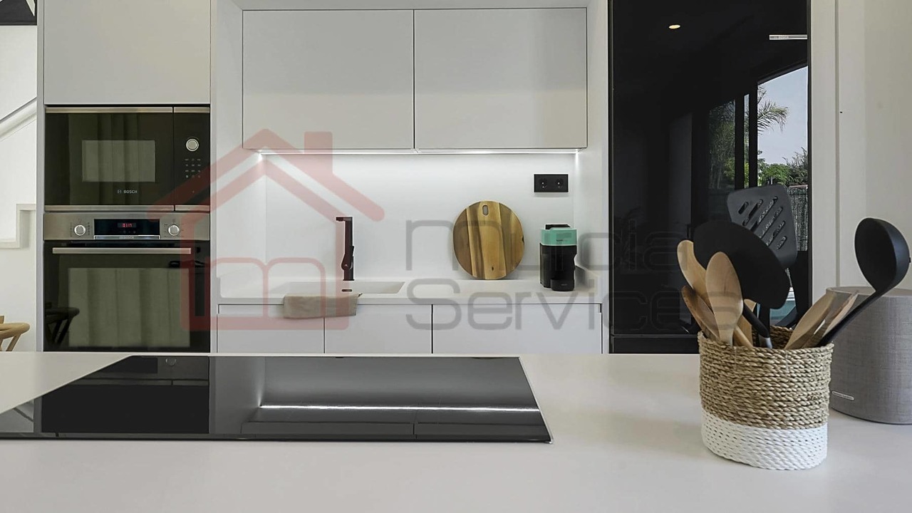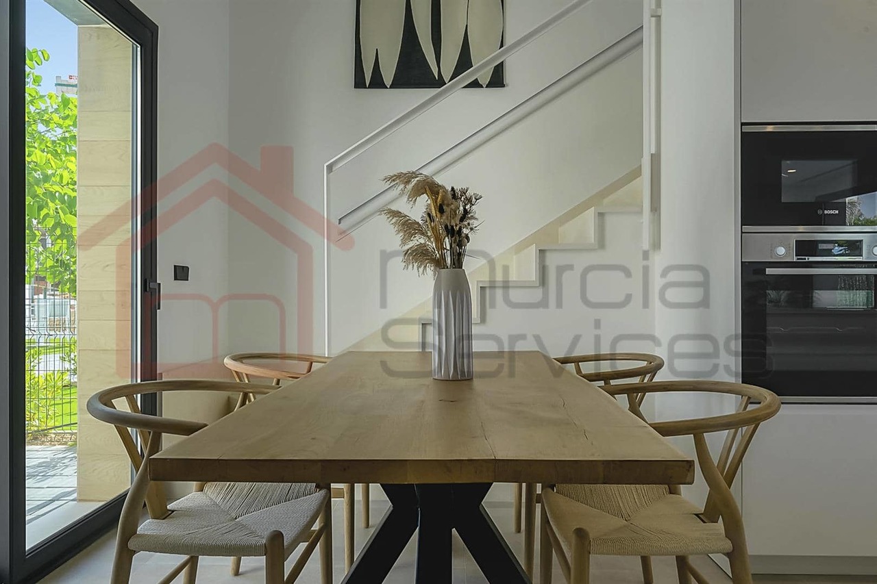 Stunning three bed villa on a corner plot with beautiful finishes.The master bedroom is located upstairs and has a walk in wardrobe and modern en-suite with a walk in shower.The master also has two terraces to enjoy.The second and third bedroom also has fitted wardrobes and access to the garden area.You have an open plan modern kitchen with an island that overlooks the living space.The living room has large sliding glass doors to create an indoor outdoor living environment.Multiple outdoor seating areas to relax and enjoy the private pool.This property has air conditioning throughout for extra comfort in the summer months.Also there is underfloor heating in all three bathrooms.Electric shutters.8 solar panels. 16,000?m² Crystal Lagoon with sandy beaches and water activities.24 hour securitySouth west facing.