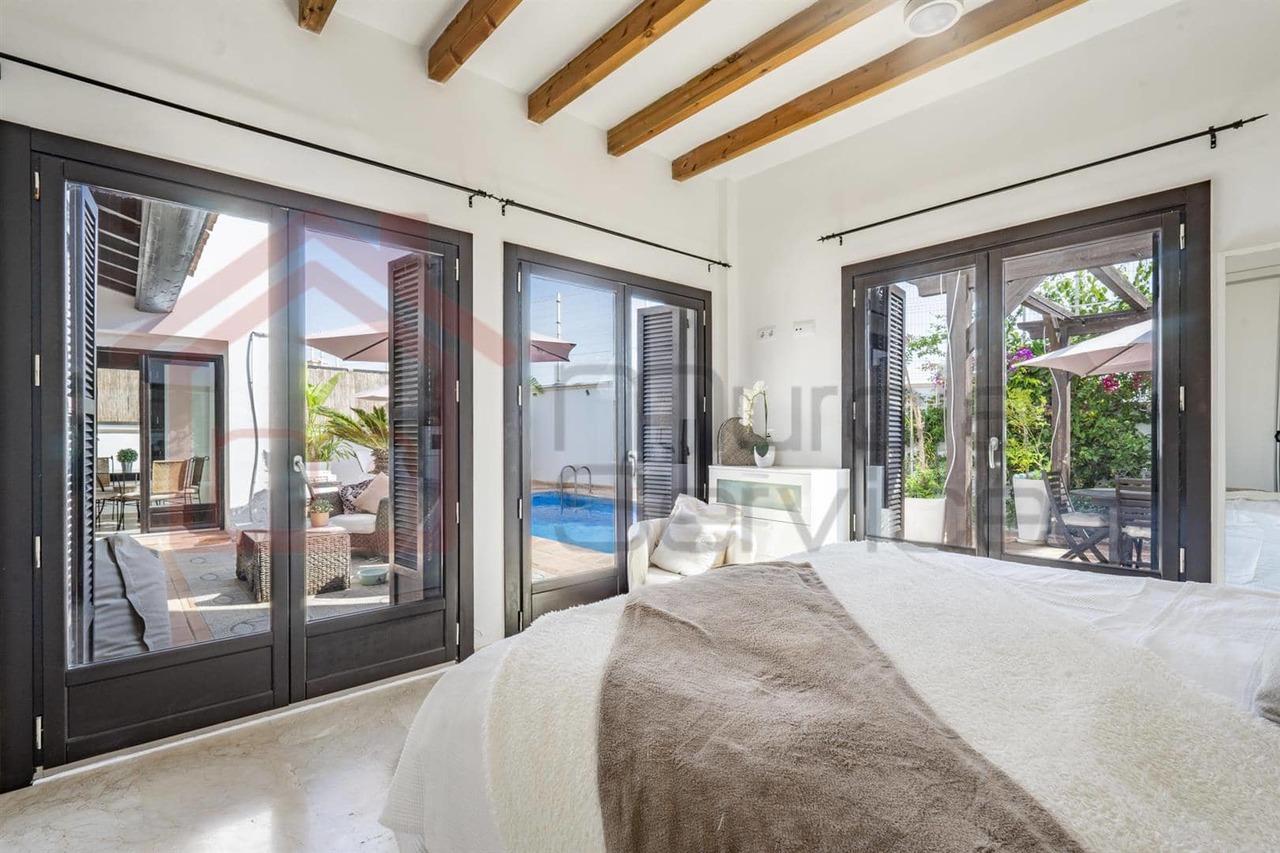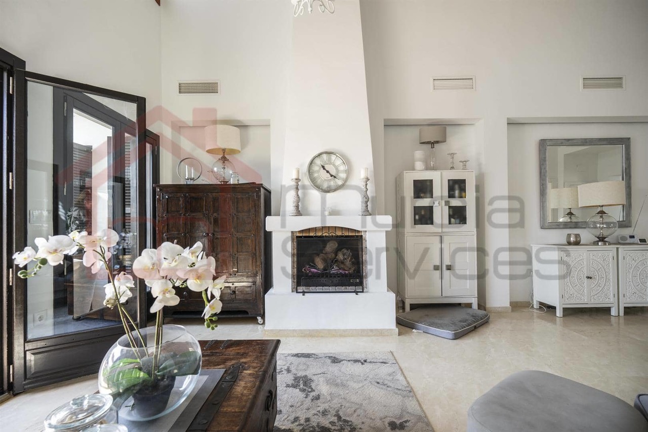 Spacious property featuring 3 double bedrooms.Master bedroom includes an en-suite bathroom with his and her sinks and a bathtubBright and open plan living/dining room ideal for entertainingEnclosed chill out room with access to the pool area.Fully fitted upgraded and extended kitchen with access to the garageLiving room boasts high wooden beamed ceilings and a cozy fireplaceAir conditioning and central heating throughout the propertyPrivate pool surrounded by multiple outdoor seating areasExtended entrance areaOutdoor BBQ areaEast Facing24 hour security