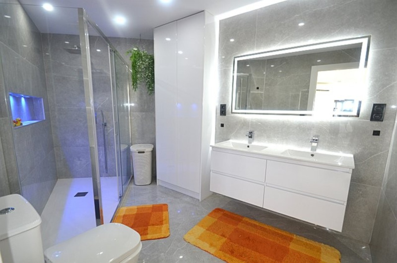 Extra-large walk-in shower with premium fittings with illuminated recess