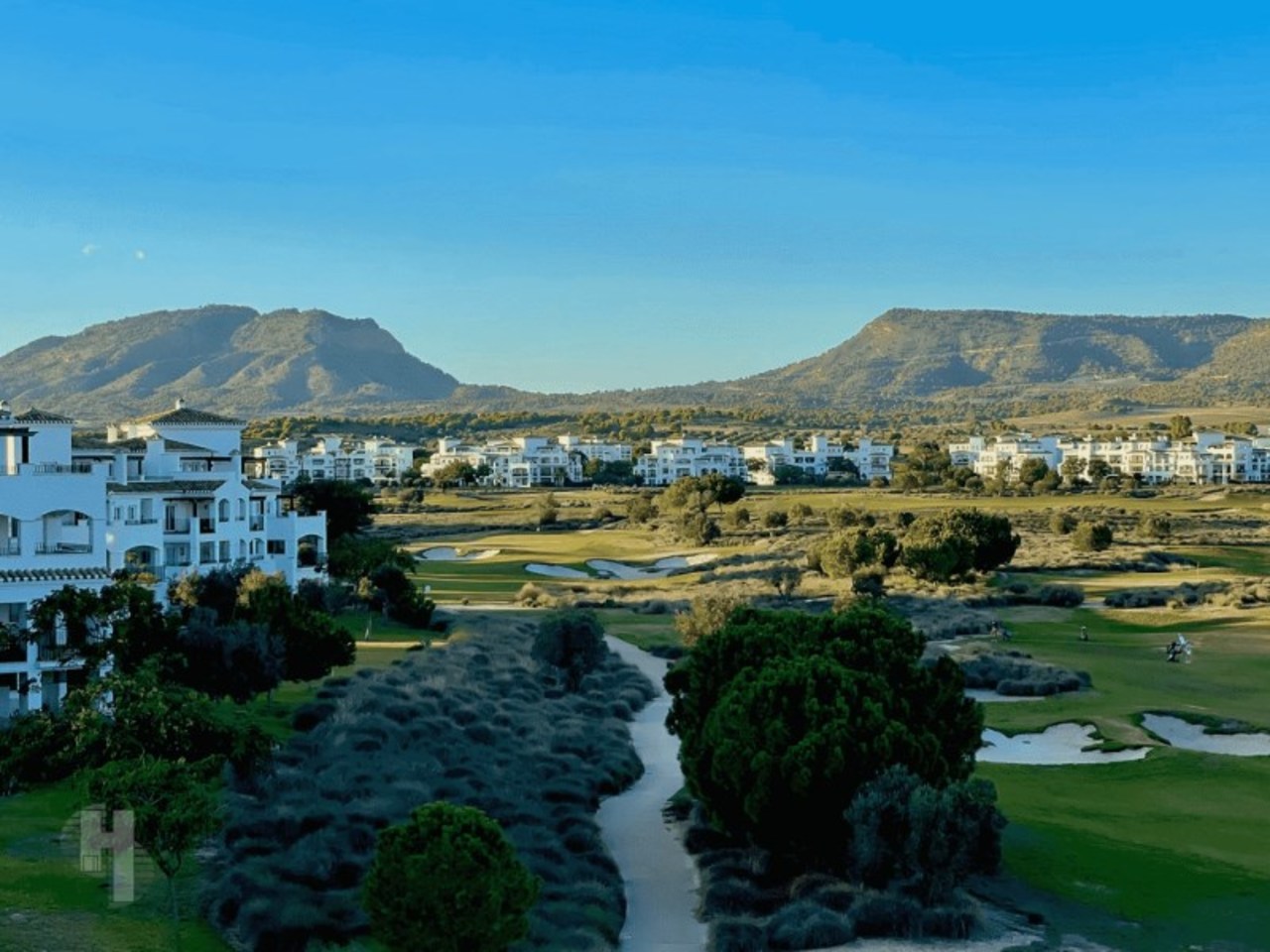 Peace, space and a touch of authentic Spain: that’s exactly what you’ll find in this ground-floor flat at Hacienda Riquelme Golf Resort (built in 2006). Located on a beautiful 18-hole golf course, designed by the renowned Jack Nicklaus, surrounded by extensive gardens and Mediterranean nature. Here you will live in a well-maintained resort with its own supermarket, restaurant/bar, sports fields and numerous swimming pools. A great place for those who appreciate comfort, convenience and the outdoors.