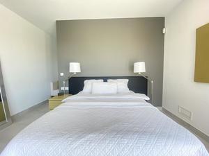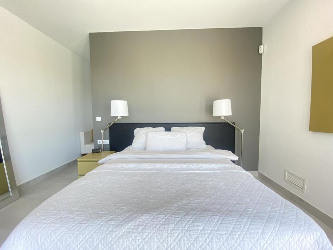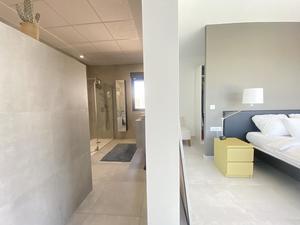 The master bedroom with ensuite luxury shower room and walk in wardrobe. From the bed you can contemplate the pool and garden area.