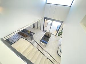 Going down the stairs, you already visualize the lounge-dining and open plan Italian design kitchen, which really outstand from this living area.