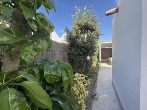 Inside, the villa features a bright open-plan living and dining area with a fully fitted kitchen, two bedrooms, and two bathrooms. One of the bedrooms includes a small office area and an ensuite guest toilet, making it ideal for remote working or as a multifunctional space.