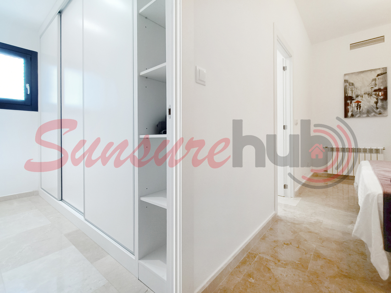 Elegant marble flooring throughout, adding timeless sophistication
