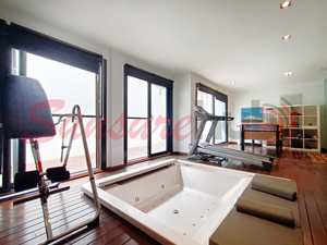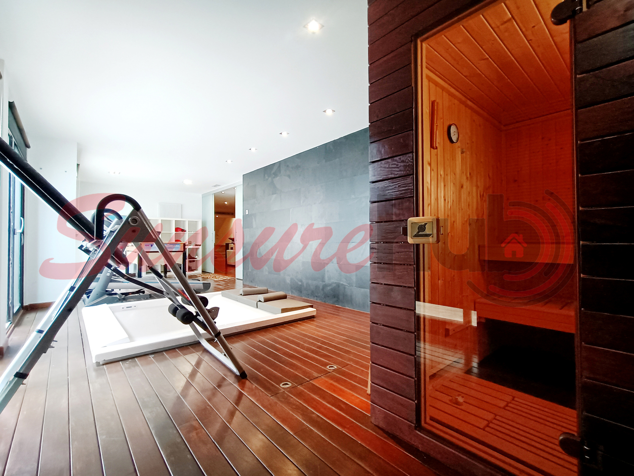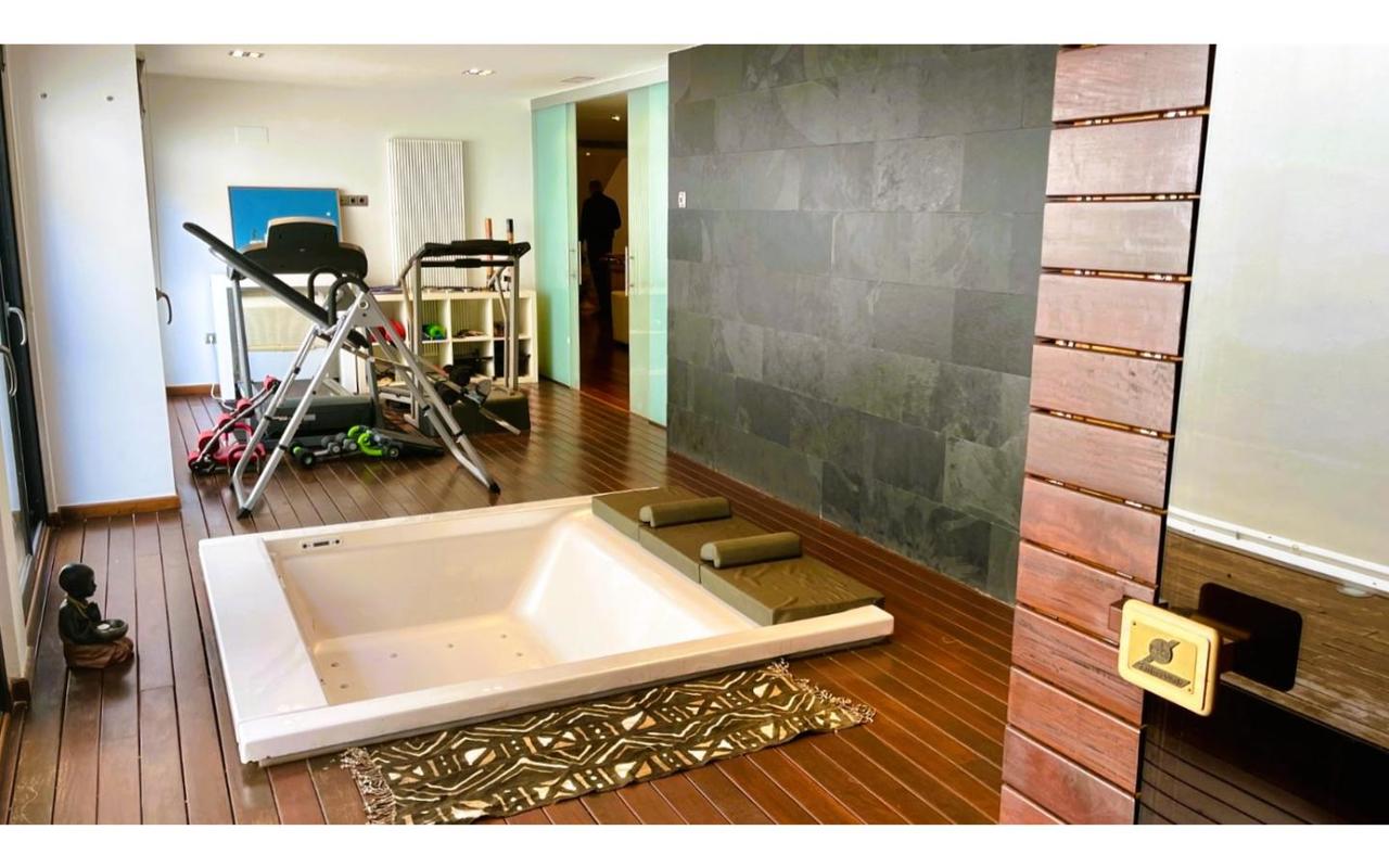 Underbuild luxury: lounge, gym, sauna, and sunken Jacuzzi