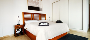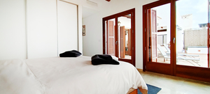 Master bedroom with built-in wardrobe, terrace access, and well-sized en-suite bathroom